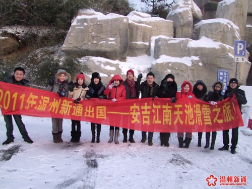 南方的天气总是鲜少见到雪,尤其在温州,这个进入隆冬时节,当人们把最厚的衣服裹在身上的时候,其实也在心里把刻画出了对于冬日的憧憬。在这个冰雪的季节,没人能抵制难戒的白色诱惑,终于,在总经理FIONA的推动下,温州新通的安吉滑雪之旅在期盼中热烈启程。