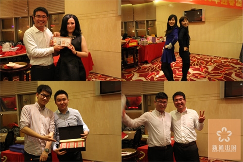 互赠礼物是新通的传统节目,旨在增进同事之间的友谊和了解,全体员工均准备了精美的礼物。在酒会进行的过程中,公司高层分别挨桌敬酒,对各位辛勤工作的员工表示感谢。大家把酒言欢,共同憧憬美好的未来。