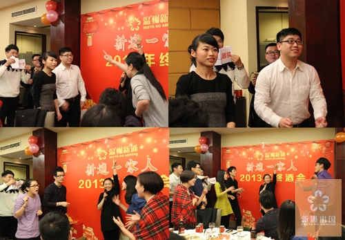 农历十二月二十五晚,温州新通出国全体同仁在新溢香厅举行了2013年终酒会