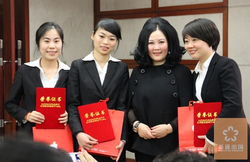 总经理Fiona给新通2013最具潜力员工奖获得者总经办徐珊颁奖