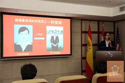 6月9日,温州新通2013年度第一、第二季度总结大会隆重举行。大会进行了五项议程,包括季度工作总结、优秀员工感言、“读书月”活动启动、新通爱心传递和员工生日庆祝等,大会由人资部经理bonnie主持。季度总结大会的顺利落幕,标志着新通前两季度工作任务圆满完成,以及企业文化宣传活动的有序进行。
