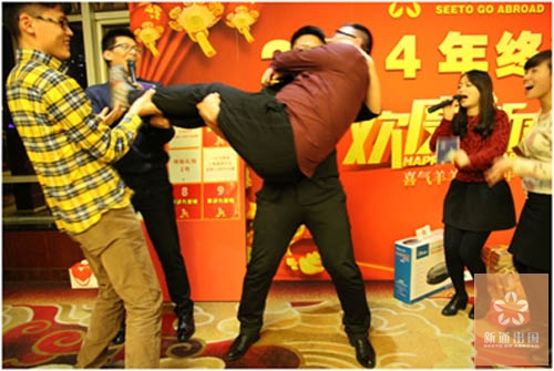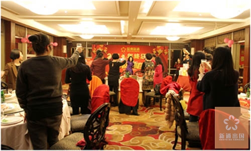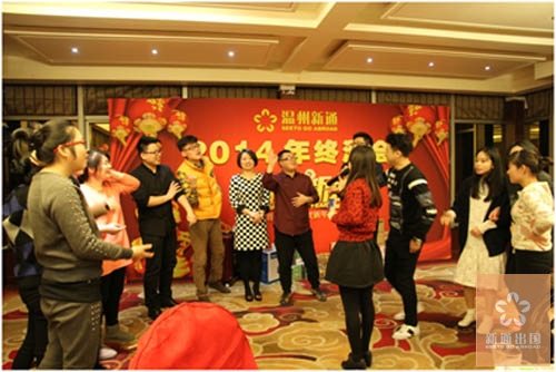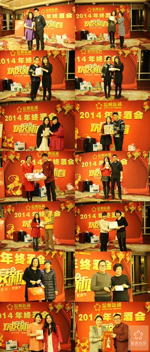 农历十二月二十五,温州新通出国在东阿外楼鲍翅馆举行了2014年终酒会,感谢公司全体同仁在过去的2014年为公司做的无私奉献,共同分享公司的发展成果,并共同庆贺即将到来的农历新年。晚会由总经办的Rachel与Jack主持。