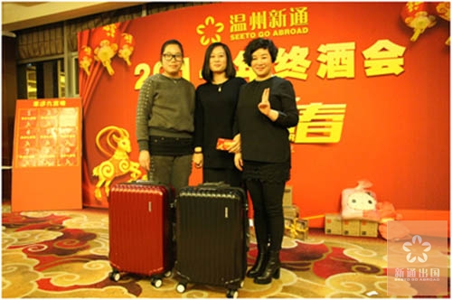 公司每一年都会准备精美高端的礼品赠送给当晚得奖的幸运儿,所以当晚的高潮当然就是幸运大抽奖,同事们信心满满,摩拳擦掌。最后投资部顾问Linda凭借超级好的运气拿到了一等奖。最后,酒会在欢乐的氛围中落下帷幕,温州新通出国全体员工期盼来年吉祥,纷纷表示2015年将努力工作,与公司共同进步成长。