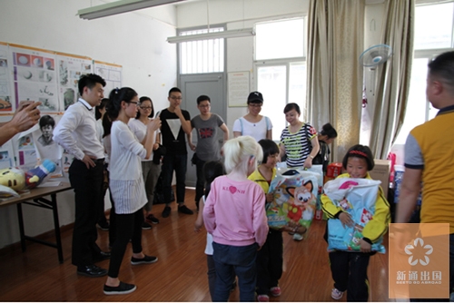 2015年6月1日,在一年一度的六一国际儿童节到来之际,温州新通出国秉承着企业的人文关怀,参加了泰顺百丈镇妇联与包垟学校联合举办的“爱心爸妈”留守儿童亲子活动,将礼物送到包垟学校的留守儿童手中,以此祝愿所有小朋友节日快乐,学习进步!