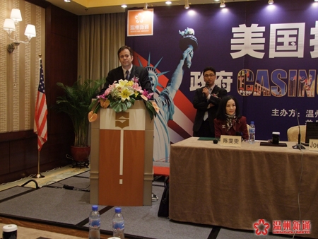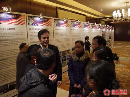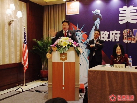 寒冷的天气,丝毫阻挡不了温州企业家们对美国投资移民的关注和追捧。11月22日,由温州新通联合美国南达科塔州政府在香格里拉举办的一场“美国投资移民政府Casino赌城项目认购会”取得了圆满成功。美国南州国际商务部部长Joop Bollen、美国投资移民资深大律师James Park、美国资深移民专家Joe Kim亲临会场,联袂为现场来宾奉献了一场精彩的美国投资移民盛宴。仅有50个席位的会场总共挤进了七八十位来宾,工作人员不得不临时在过道上添加多个位置。另外,嘉宾的精彩发言赢得了来宾的阵阵掌声,现场咨询氛围异常高涨,设在会议室门口的咨询台四周人声鼎沸,每个咨询顾问均被围的水泄不通。