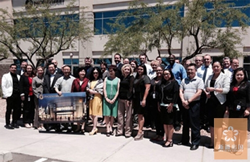 亚利桑那州政商界要员设晚宴盛情迎接了代表团一行,出席晚宴的主要有:国会议员Paul Gosar、Ann Kirkpatrick的区域首代Ron Lee,前郡长David Snider、凯撒市市长Bob Jackson等。