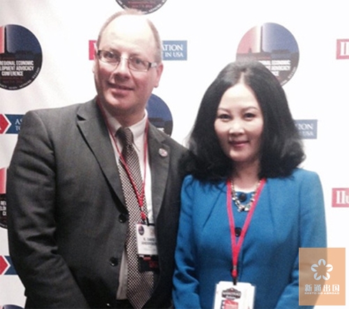 温州新通出国总经理陈雯雯女士与美国EB-5投资移民行业协会主席David Andersson先生亲切合影