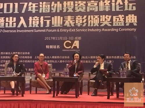 2017海外投资高峰论坛暨出入境行业表彰颁奖盛典,在成都香格里拉大酒店成功举行,新通出国总经理Fiona应邀出席了此次行业盛典。在论坛现场,全国各大投资移民机构齐聚,众多国内外知名媒体云集,高朋满座,盛况非凡。